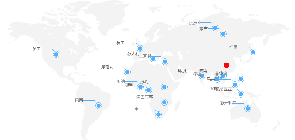 因為我們產品的卓越性能和專業的售后服務,我們生產的重力選礦設備、浮選設備、分級設備、篩分設備已蜚聲海內外。我們的產品占據著中國重力選礦設備15%的市場份額。同時,我們在發展中堅持國際化戰略,根據市場需求和自身產品特點,不斷加強對國際市場的開拓力度,目前我們的產品已銷往:美國、英國、澳大利亞、巴西、土耳其、南非、津巴布韋、蘇丹、加納、剛果、摩洛哥、印度、印度尼西亞、馬來西亞、菲律賓、韓國、蒙古、越南、泰國等50余個國家。