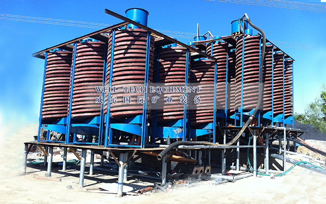 玻璃鋼螺旋溜槽是綜合了螺旋選礦機、玻璃鋼螺旋溜槽、搖床、離心選礦機的特點,經冶金部組織有關科研,設計、高校和礦廠等單位進行鑒定通過,認為該設備性能優良,選別指標先進,并獲得冶金部科技研究成果獎,現已在有色、黑色金屬礦山大量應用。本設備適用于分選粒度0.3-0.02 毫米細料的鐵礦、鈦鐵礦、鉻鐵礦、硫鐵礦、鋯英石、金紅石、獨居石、磷乙礦、鎢礦、錫礦、鉭礦、鈮礦以及具有比重差異的其他有色金屬、稀有金屬和非金屬礦物體。