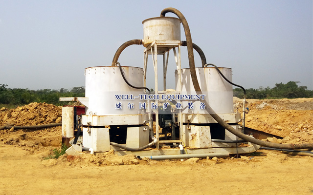 離心選礦機適合于回收微細顆粒金,其回收率高、操作簡單,自動排精礦,現(xiàn)大量應(yīng)用于砂金礦選場中。