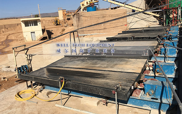 黑鎢礦重選通常采用多級跳汰、多級搖床、中礦再磨的重選流程。即細碎后合格礦經過振動篩分級后進行多級跳汰,產出跳汰重選毛砂,粗粒級跳汰尾礦進入磨機再磨,細粒級跳汰尾砂經過分級機后進入多級搖床選別,產出搖床重選毛砂,搖床尾礦排入尾礦庫,搖床中礦返回再磨再選,跳汰和搖床的重選毛砂進入精選作業。