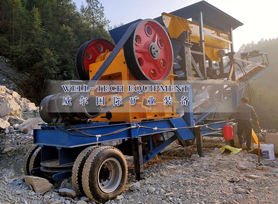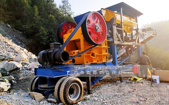 鄂式破碎機破碎礦石的過程,加入到顎式破碎機破碎腔(由固定顎板和可動顎板組成的空間)中的物料,由于動顎板作周期性往復擺動,當動顎板靠近固定顎板時,物料受到壓碎、劈裂和彎曲折斷的作用而被破碎。當動顎板離開固定顎板時,已碎到小于排礦口尺寸的物料,靠其自重從下部排礦口排出。位于破碎腔上部還未破碎到足夠小的物料,隨之下落到破碎腔的下部,再次受到顎板的作用而繼續被破碎。