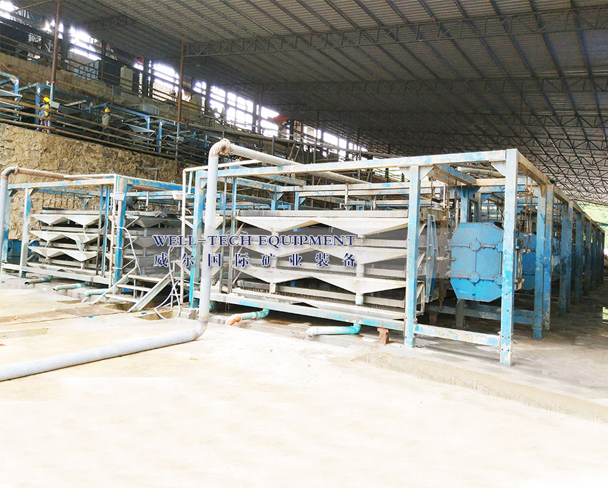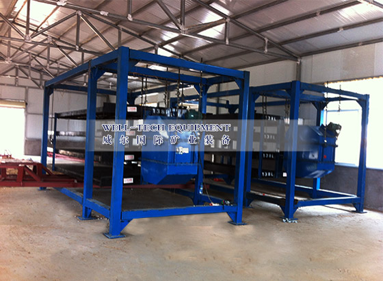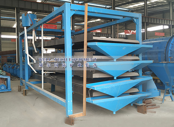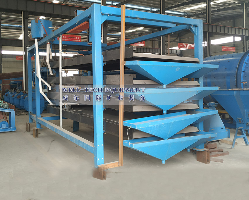 多層搖床在選礦設(shè)備中屬重力選礦的主要設(shè)備之一,多層搖床廣泛用于選別鎢、錫、鉭、鈮、鐵、錳、鉻、鈦、鉍、鉛、金等其他稀有金屬和貴金屬礦,也可用于煤礦。搖床可用于粗選、 精選、掃選等不同作業(yè),選別粗砂(2-0.5mm)、細(xì)砂(0.5-0.074mm)、礦泥(-0.074)等不同粒級。也可用于選別鐵、錳礦石和煤。當(dāng)處理鎢、錫等礦石時,搖床的有效回收粒度范圍為2-0.022毫米。
