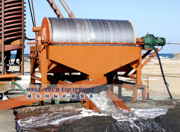 濕式磁選機(jī)適用于礦山、選煤廠等單位,濕式磁選機(jī)用于弱磁場(chǎng)濕式選別細(xì)顆粒的強(qiáng)磁性礦物,或者除去非磁性礦物中混雜的強(qiáng)磁性礦物。