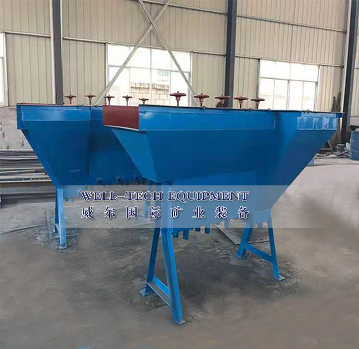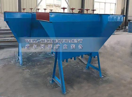 篩板式水力分級機的優(yōu)點是構造簡單,不需要動力。與機械攪拌式水力分級機比較,高度較小,便于配置。可以根據選廠處理能力的不同,制成四室、六室、八室等不同的規(guī)格。這種分級機在我國中小型鎢礦選礦廠應用較多。