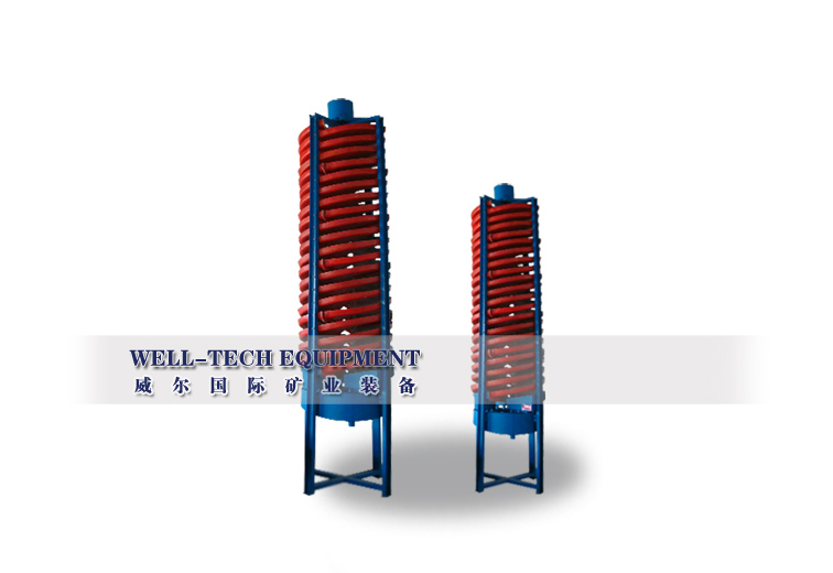 玻璃鋼螺旋溜槽由給礦勻分器、給礦槽、螺旋槽,產品截取槽、產品集聚斗和槽支架(包括十字架或三角架)等六部分組成。由螺旋片聯接成的螺旋槽是主要部件。螺旋片是由玻璃鋼(玻璃纖維增強塑料)制成,借螺栓接在一起,螺旋槽的選別面有一層預制的耐磨層。它具有質輕、堅固、經久耐用消費品的優點。螺旋槽的上方設有多管給礦勻分器分礦均勻,控制簡便。分礦器自由放置在支桌的十字架(或三角架)上。均分的礦漿通過裝在螺旋槽首端的給礦槽緩慢地給到螺旋槽面上,進行分選。螺旋槽的尾端裝在有閥塊式新產品截取槽將分選的新產品沿徑向按品位分成三種(或四種)新產品。用調節閥塊的位置來改變各新產品的截取寬度。新產品集聚斗是一同心環形筒,將已截取的多頭礦流分別匯集導出。螺旋溜槽的橫截面,曲線的斜率變化特別適于細微粒物料的選別。螺旋溜槽具有結構簡單、無運動件、重量輕、元噪音、配置安裝和維修方便等優點。