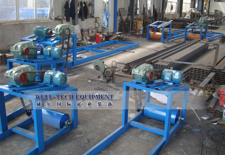帶式輸送機其驅動裝置采用擺線針輪減速器,工作可靠、維護保養方便。該機適用在常溫下輸送原煤、爐渣、鹽、砂廠、糧食、礦石及各種堆比重為0.5~2.5T/M3的各種塊狀、粒狀等散狀物料。本公司生產的皮帶輸送機具有輸送量大、結構簡單、維修方便、部件標準化等優點。它廣泛的應用在礦山、冶金、化工等部門,用來輸送松散物料或成件物品。根據輸送工藝需要,可以單臺輸送也可以多臺組合或與其他輸送設備組成水平或傾斜的輸送系統以滿足不同布置形式的作業線需要。